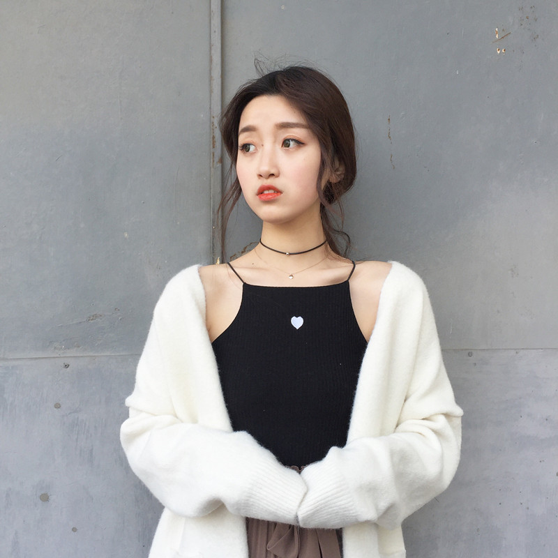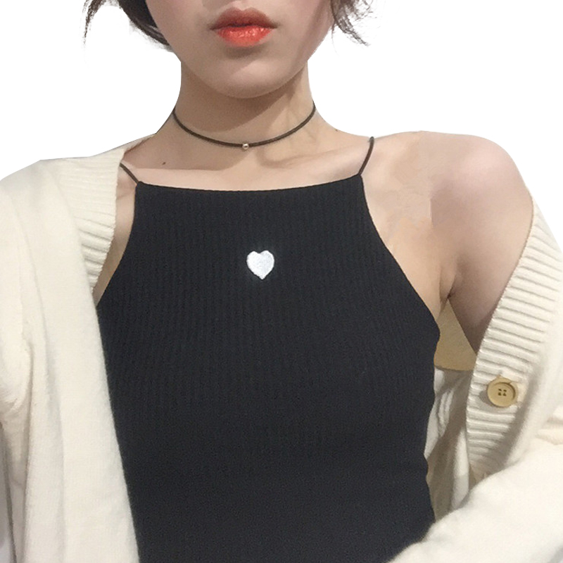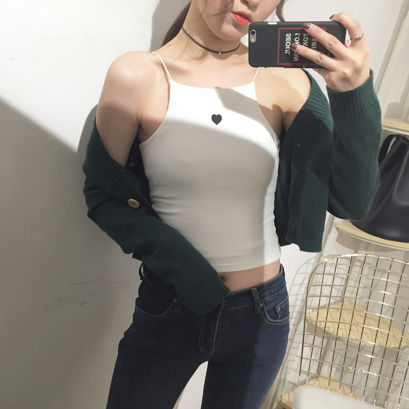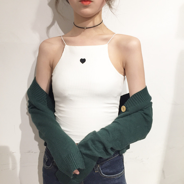 / 春夏韓版小性感愛心刺繡小背心細肩帶吊帶外穿打底衫修身上衣女款
