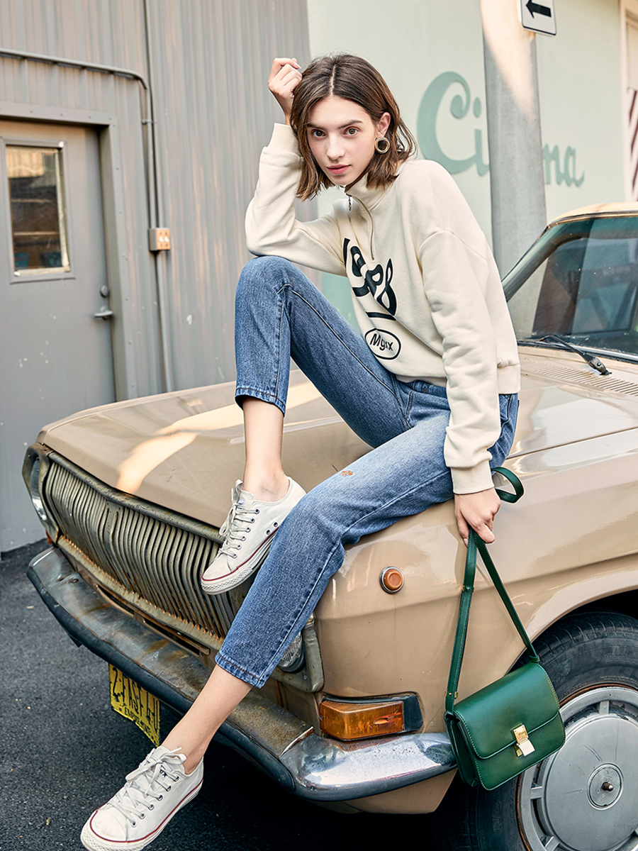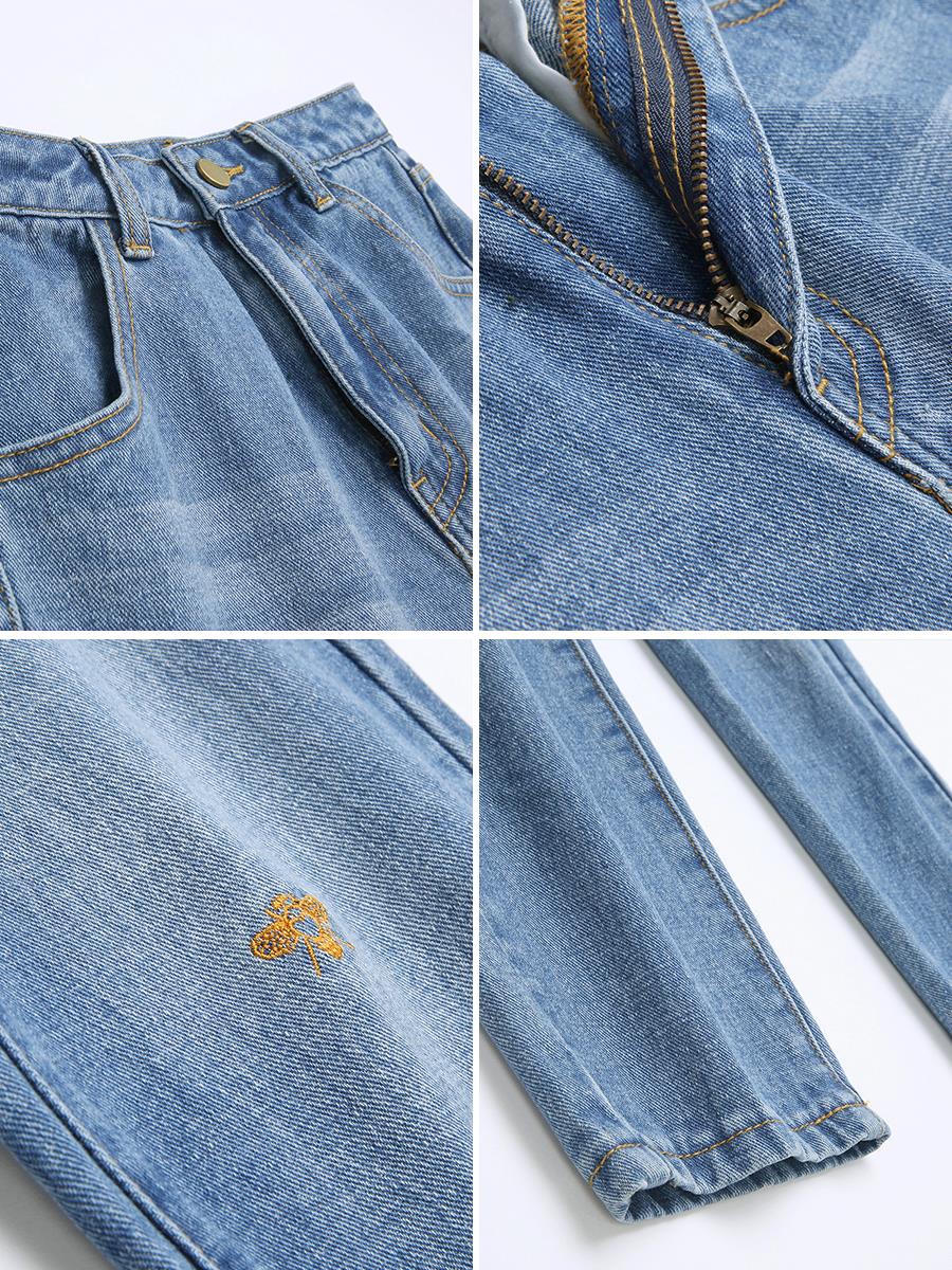 MG小象高腰牛仔褲女秋2018新款韓版顯瘦chic直筒褲學生寬松褲子潮