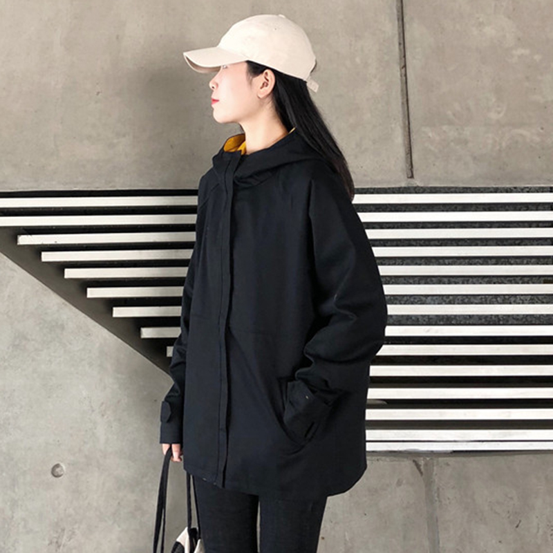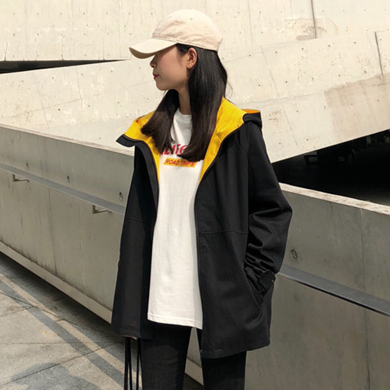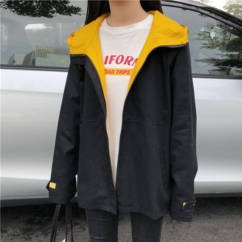復古寬松連帽外套秋冬女裝2018新款港風黑色開衫學生休閑長袖上衣
