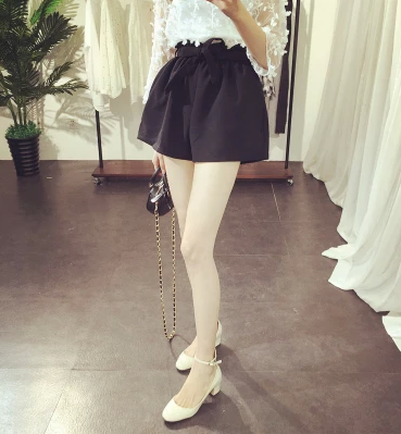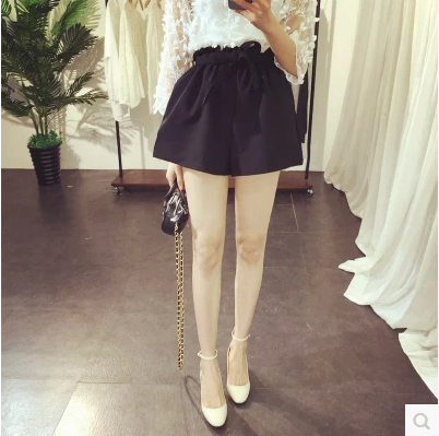 / 2017夏新復古荷葉邊松緊腰系帶闊腿褲休閑百搭寬松熱a字短褲裙女