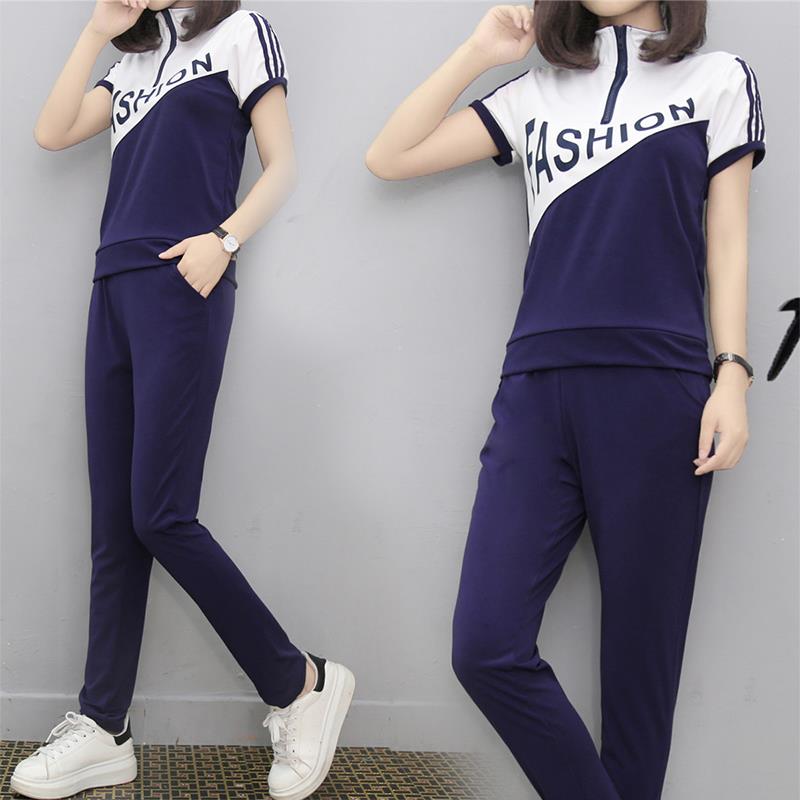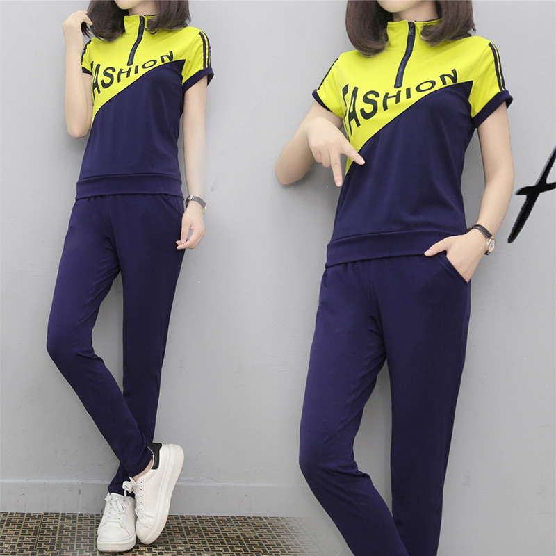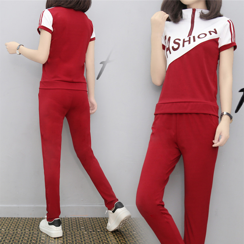 / 運動套裝女夏季短款休閑短袖七分褲長褲大碼跑步運動服兩件套夏天