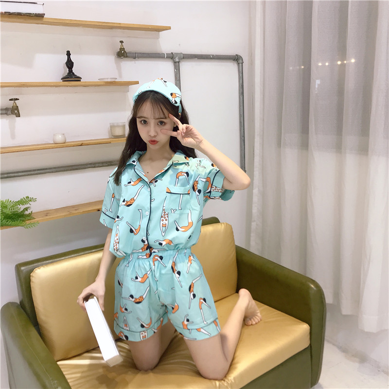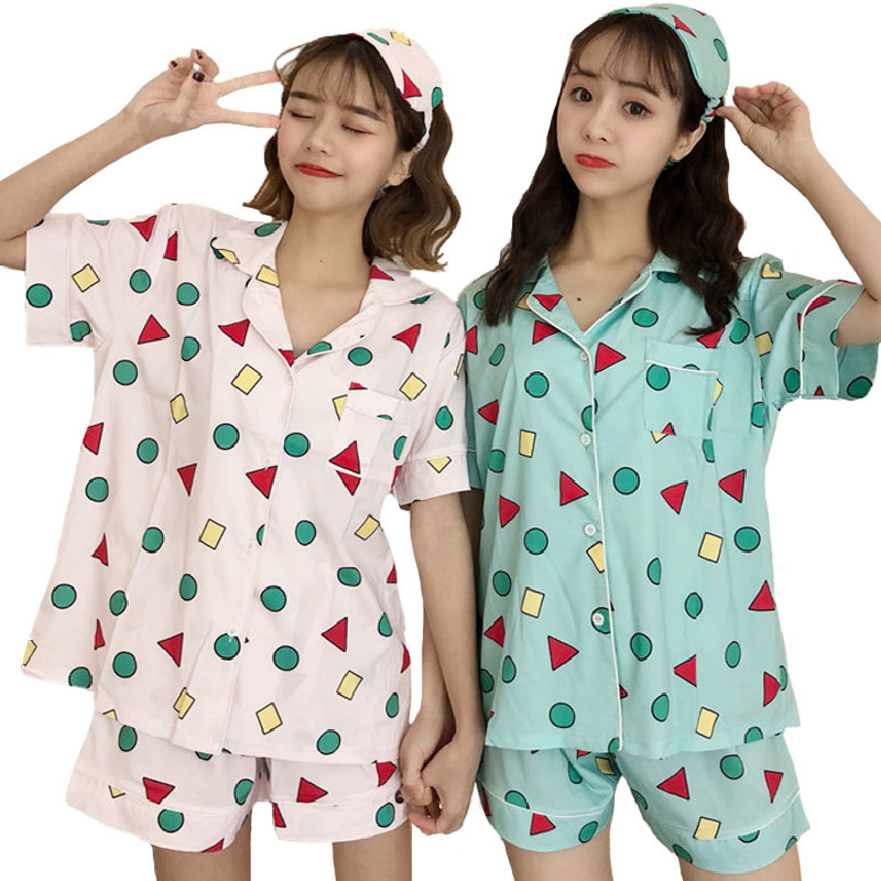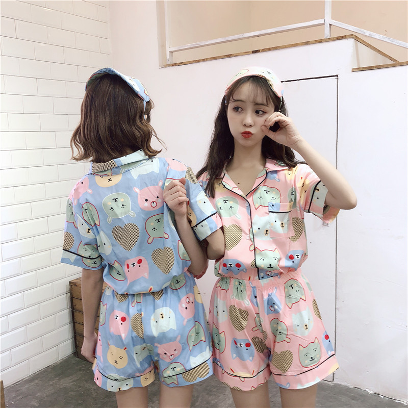 / 春夏女裝韓版學生可愛閨蜜小清新寬松短袖睡衣兩件套家居服套裝潮