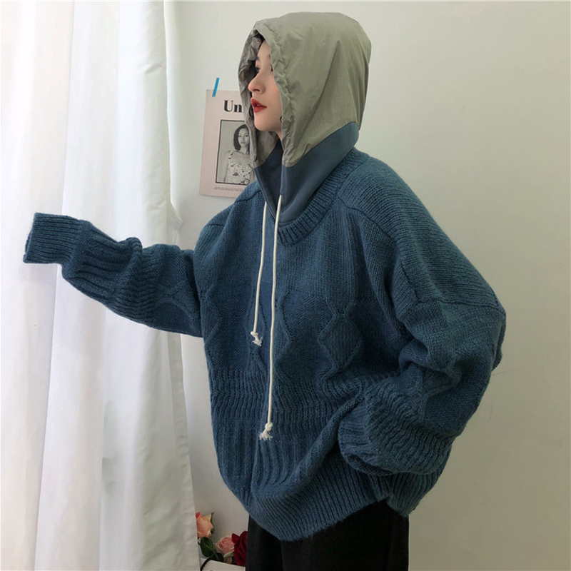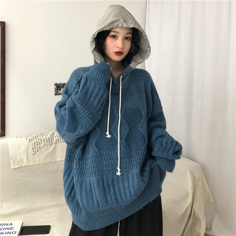 慵懶風抽繩連帽針織衫女秋冬裝2018新款韓版寬松麻花套頭毛衣外套