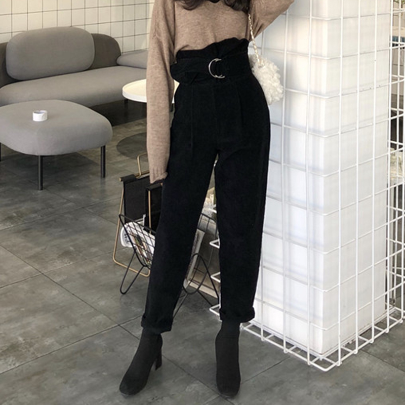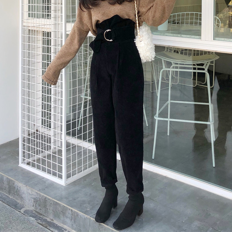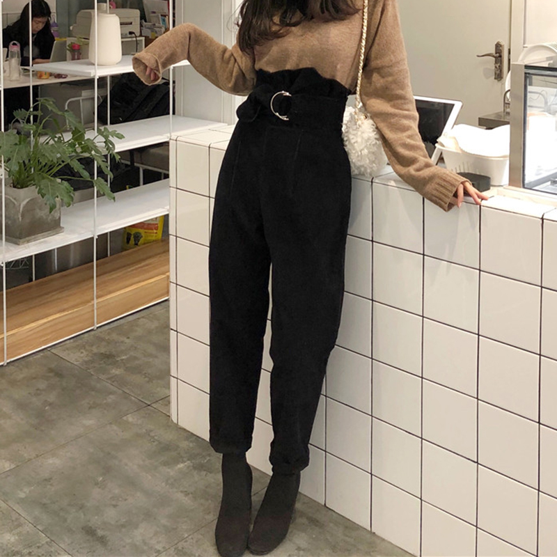 / 老爹褲女秋冬2018新款韓版高腰燈芯絨長褲學生小腳哈倫褲初戀褲子