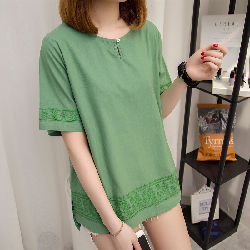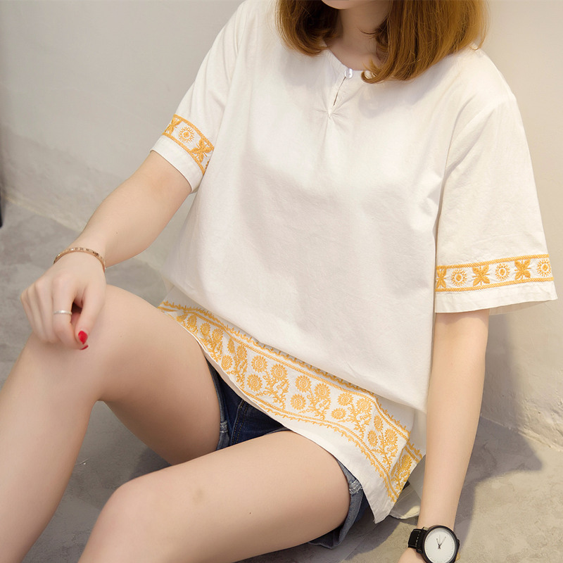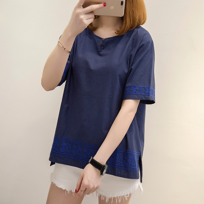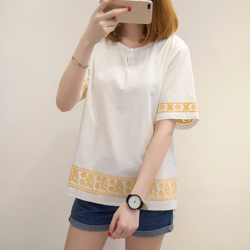 夏裝新款民族風女裝上衣寬松t恤女夏韓版短袖簡約體恤衫百搭