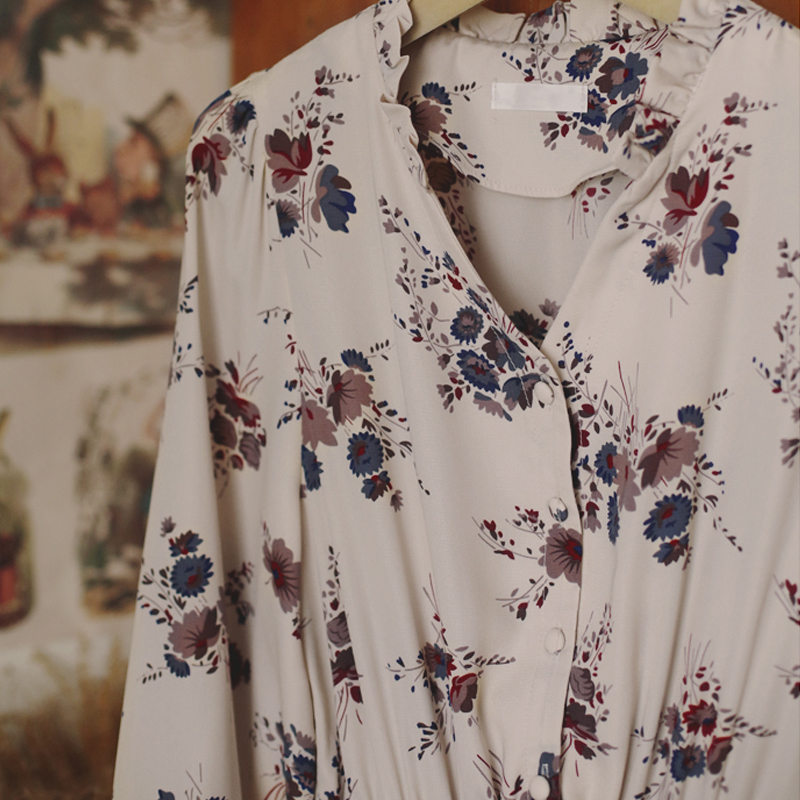 / 春夏裝新款氣質印花單排扣長袖淑女時尚大碼連衣裙修身韓版女