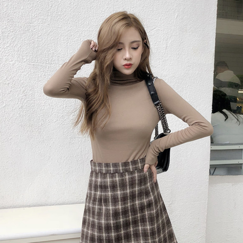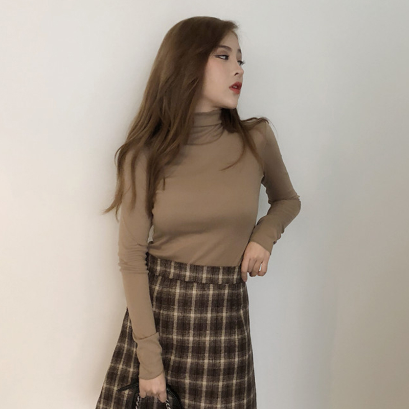 / 港味修身顯瘦打底衫女秋裝新款氣質長袖上衣復古風小高領黑色T恤
