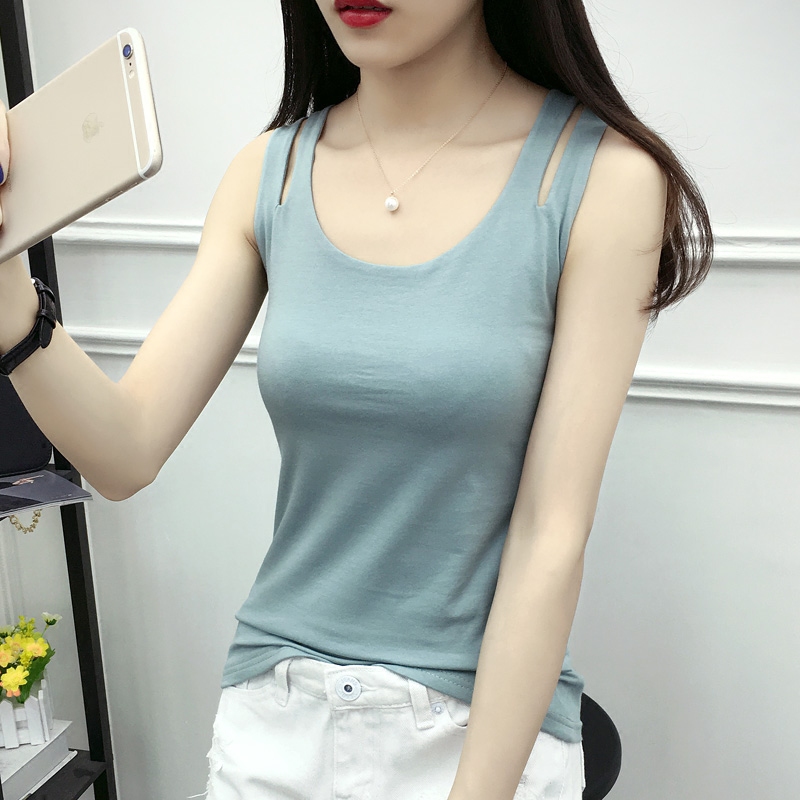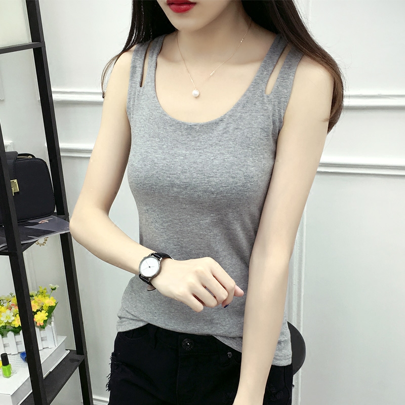 新款雙層純棉打底吊帶背心女秋修身顯瘦外穿大碼小衫簡約百搭上衣
