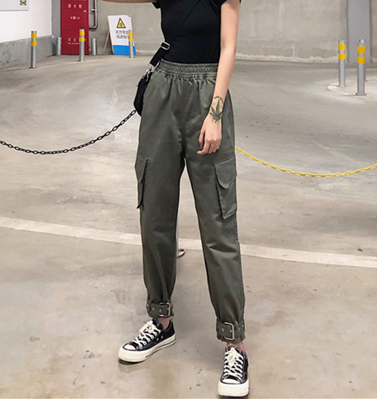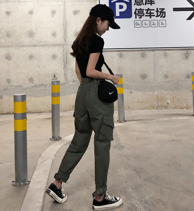 秋季女裝韓版寬松BF風工裝束腳褲高腰顯瘦直筒褲哈倫褲休閑褲長褲