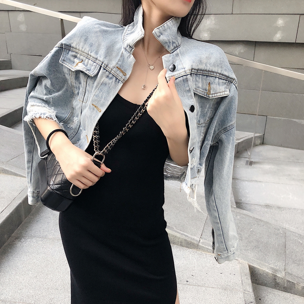/ 晚晚風女2018初秋時尚網紅復古港味牛仔外套吊帶裙兩件套氣質套裝