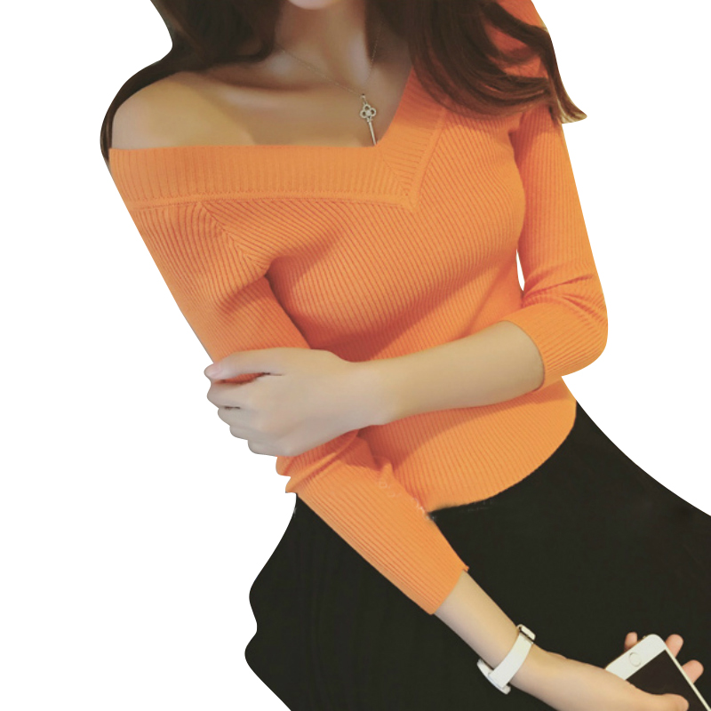 春秋修身內搭短款毛衣長袖V領漏肩打底衫針織衫女款上衣小衫