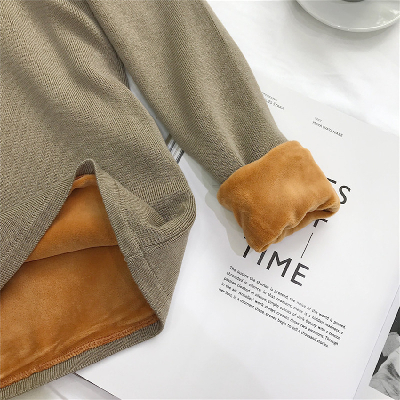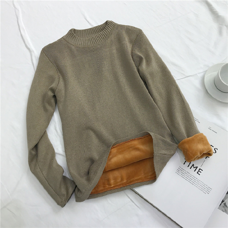 秋冬加絨加厚毛衣女裝新款套頭保暖針織打底衫修身半高領長袖上衣