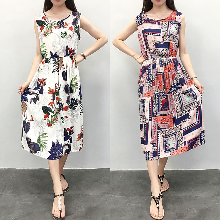 / 2017波西米亞沙灘裙夏連衣裙女綿綢碎花長裙海邊度假背心長裙子