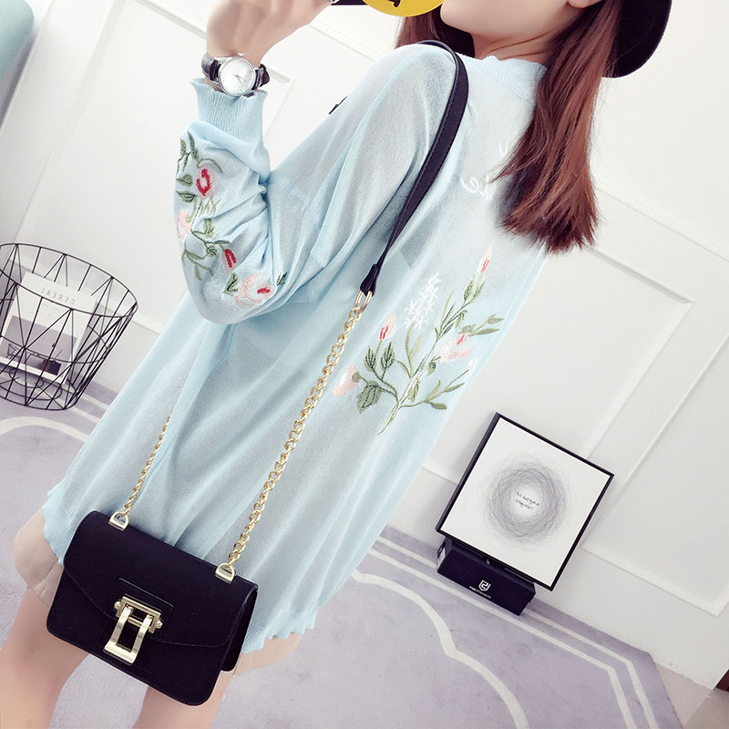 夏季針織開衫女薄款中長款寬松外搭冰絲外套韓版長袖防曬衣空調衫