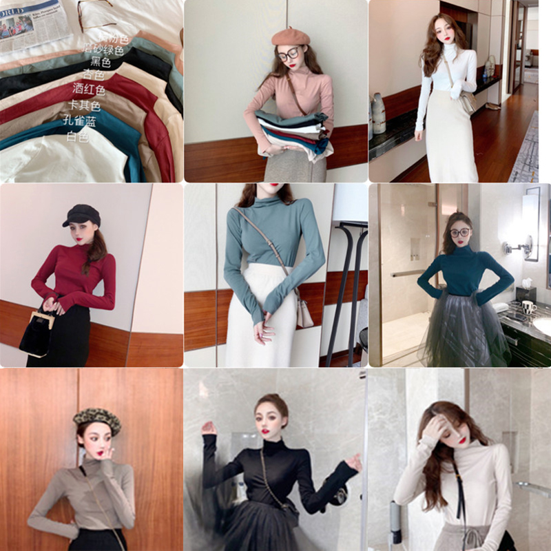 chic上衣新款韓版秋季半高領內搭長袖T恤女裝修身顯瘦百搭打底衫