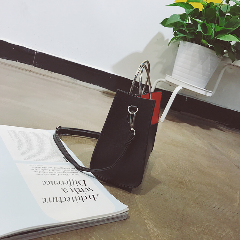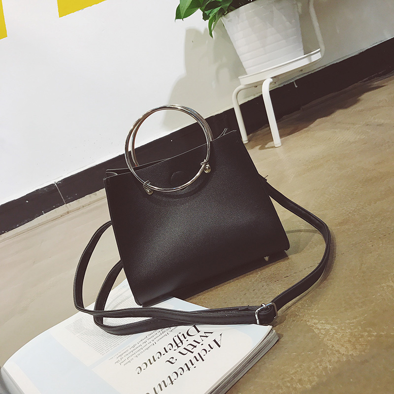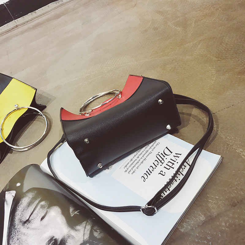 17大圈子母圓環包手提包小方包撞色百搭單肩斜挎包日韓迷你女包