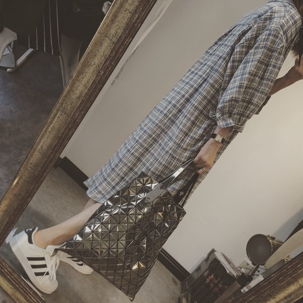 韓版學院風寬松格子襯衣 百搭減齡七分袖娃娃衫中長款襯衫女夏裝