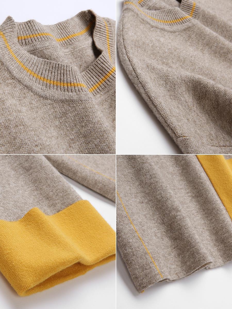 / MG小象拼色套頭毛衣女休閑高腰闊腿褲秋冬新款寬松顯瘦長袖針織衫