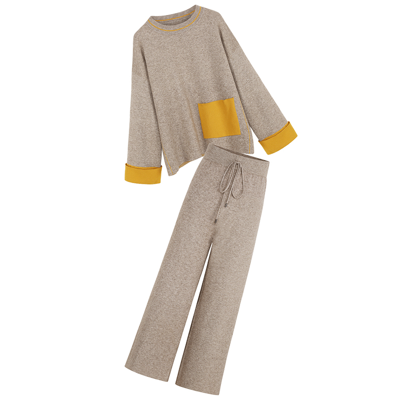 MG小象拼色套頭毛衣女休閑高腰闊腿褲秋冬新款寬松顯瘦長袖針織衫