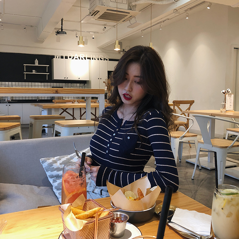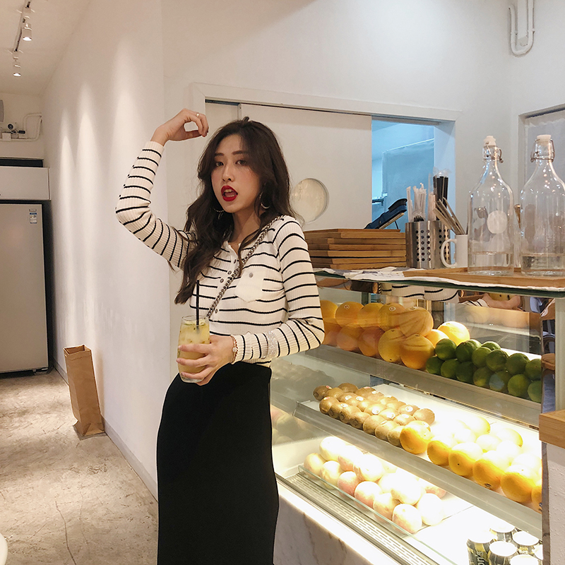 / 秋裝女2018新款修身顯瘦韓版時尚百搭打底上衣復古條紋長袖針織衫
