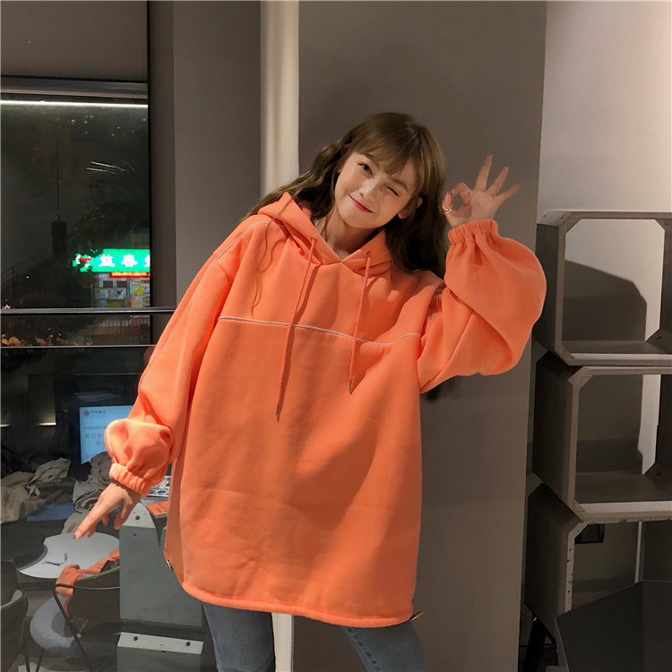秋冬女裝韓版BF風寬松中長款加絨加厚連帽套頭超火衛衣上衣外套潮
