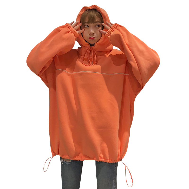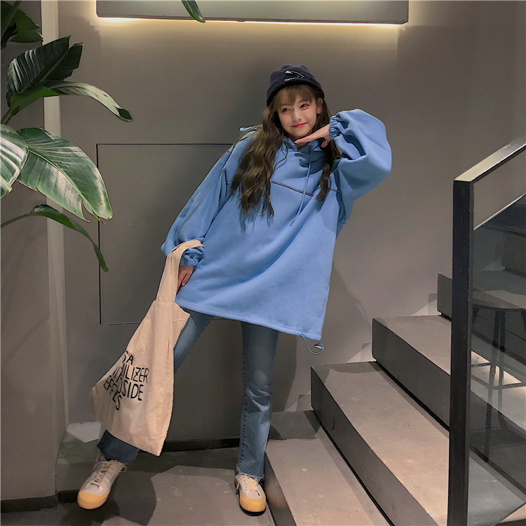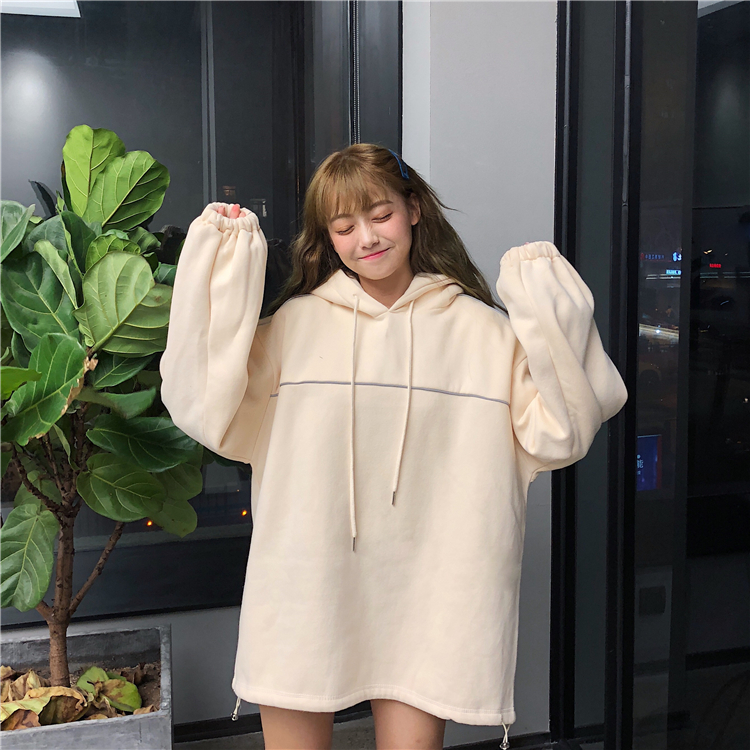 / 秋冬女裝韓版BF風寬松中長款加絨加厚連帽套頭超火衛衣上衣外套潮