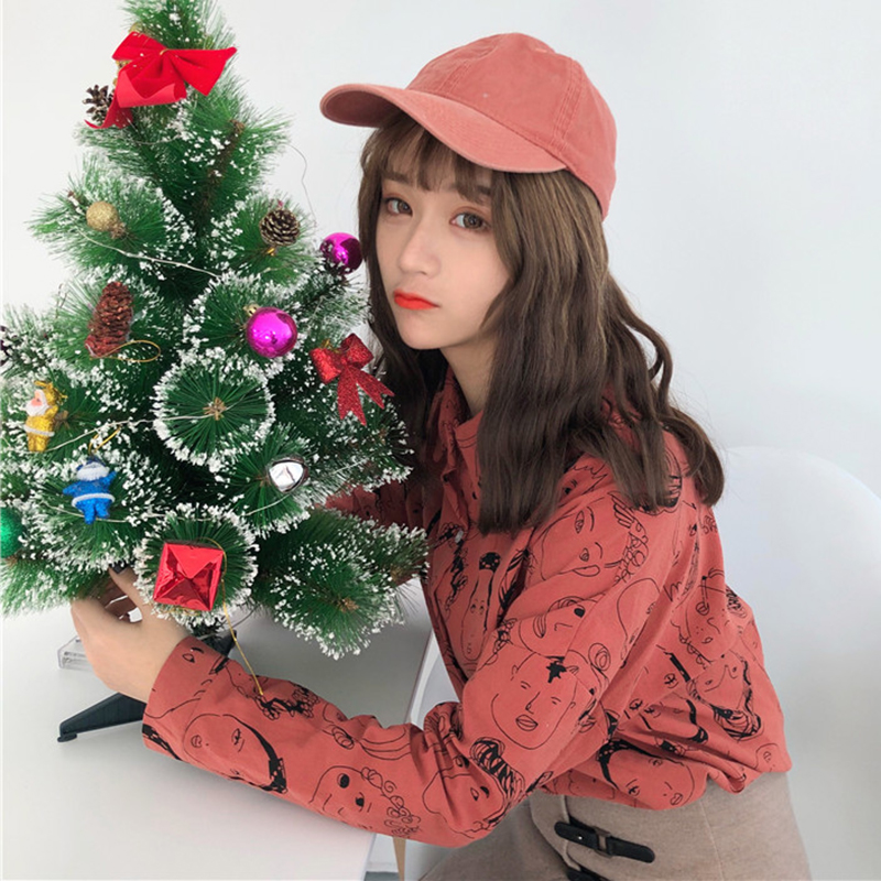 港味復古卡通圖案寬松長袖襯衫秋裝新款冷系女裝襯衣學生休閑上衣