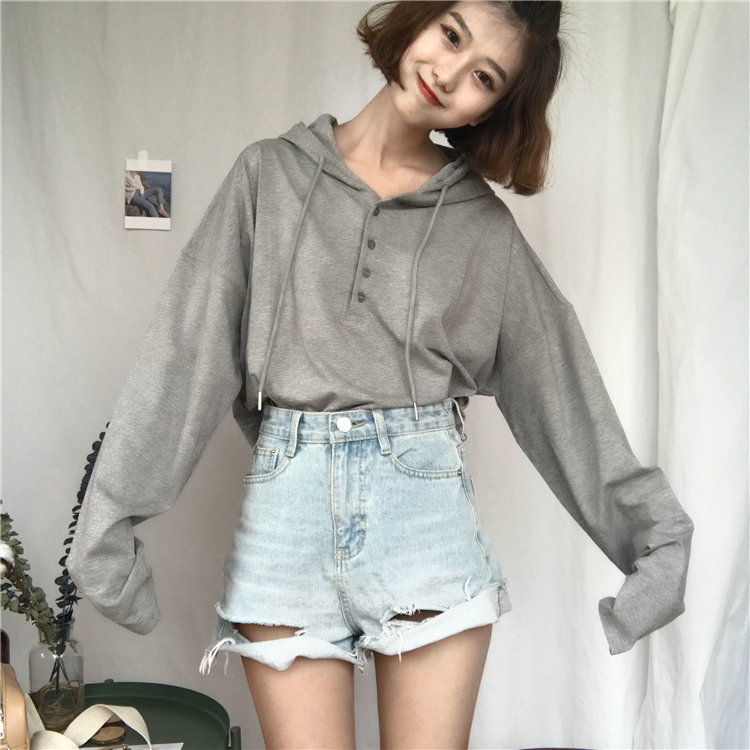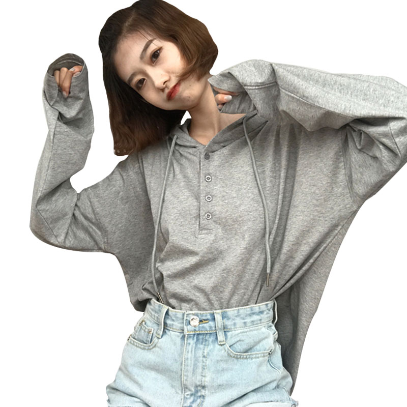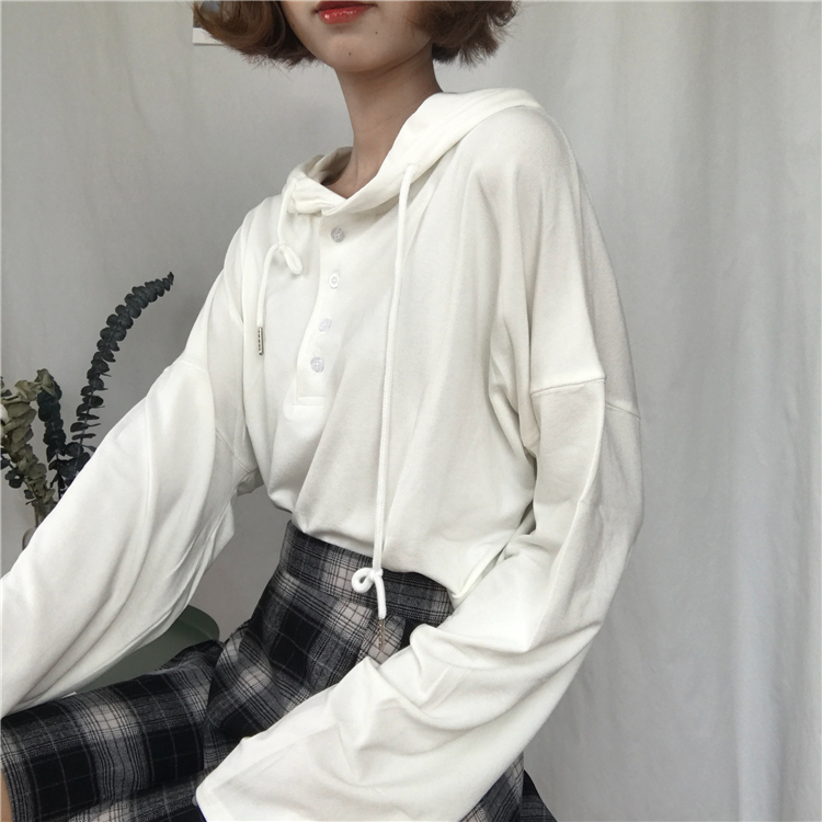 / 秋裝新款女裝韓版寬松百搭純色連帽系帶套頭衛衣長袖休閑上衣外套