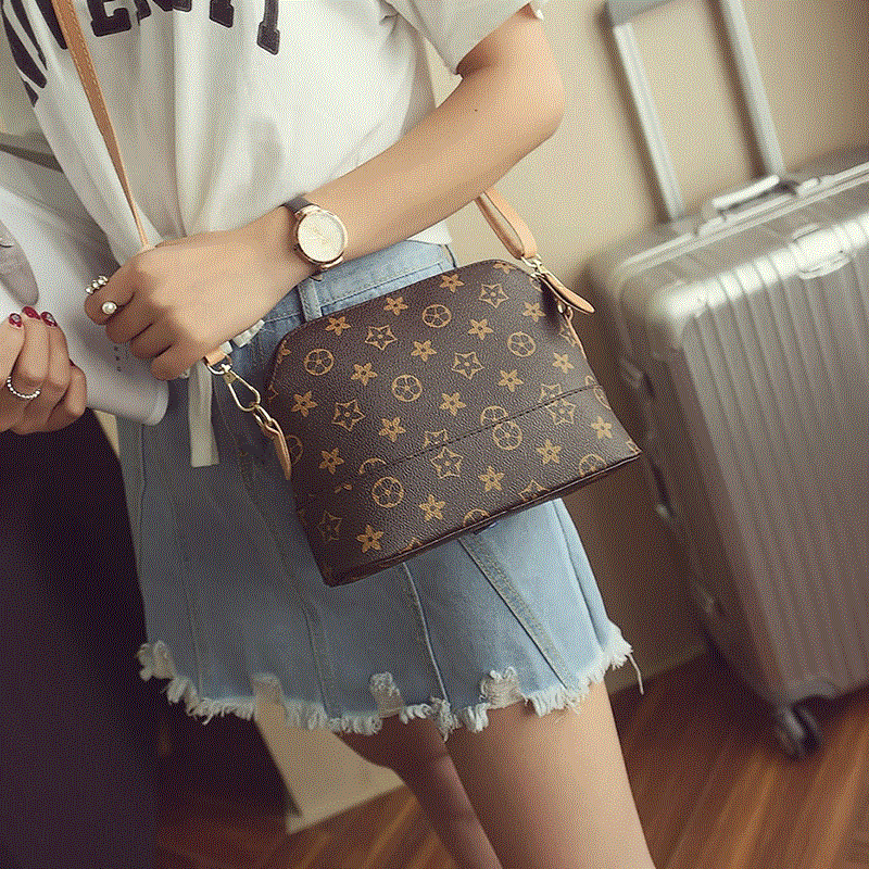 新款2017春夏新款包百搭老花小方包單肩斜跨迷你小包包簡約貝殼包