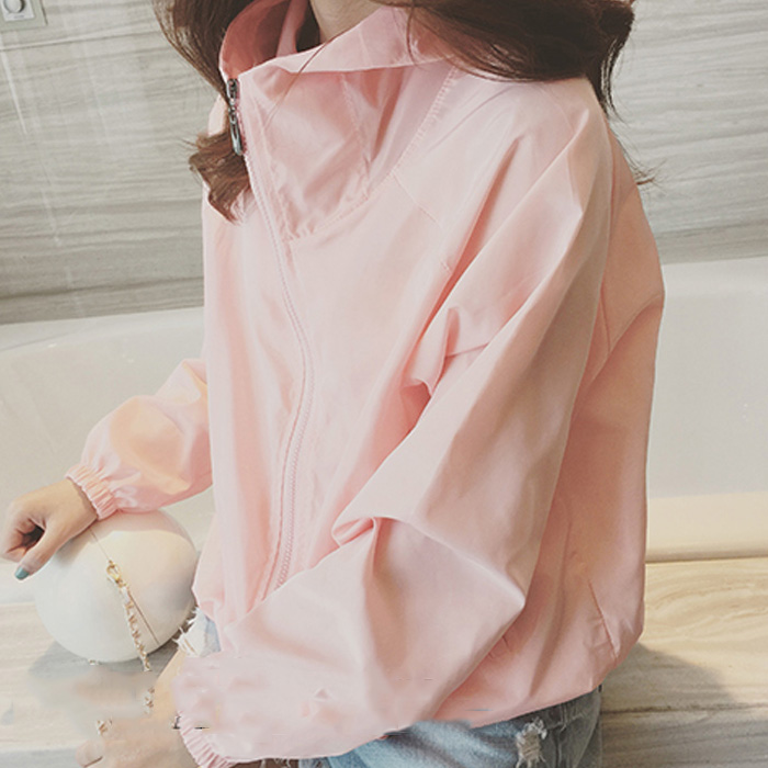 2017夏季新款寬松連帽長袖棒球防曬服女糖果色bf風薄外套防曬衣女