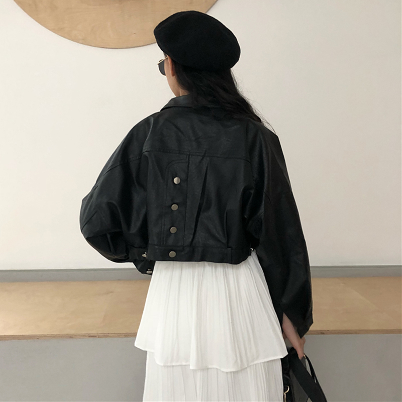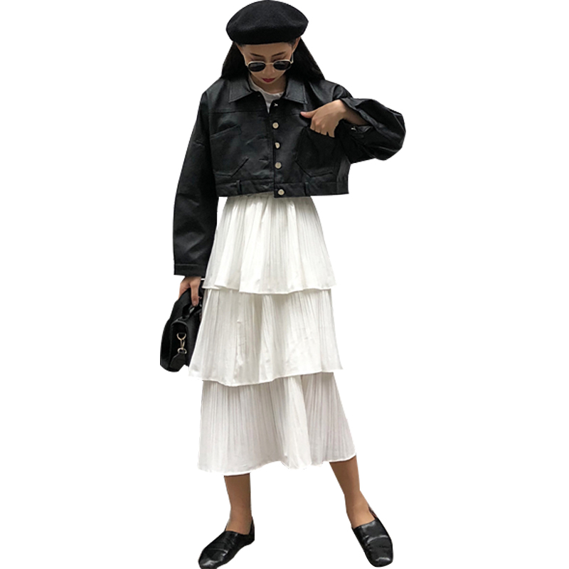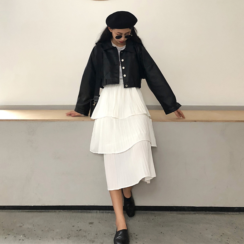 白色裙子|黑色皮衣