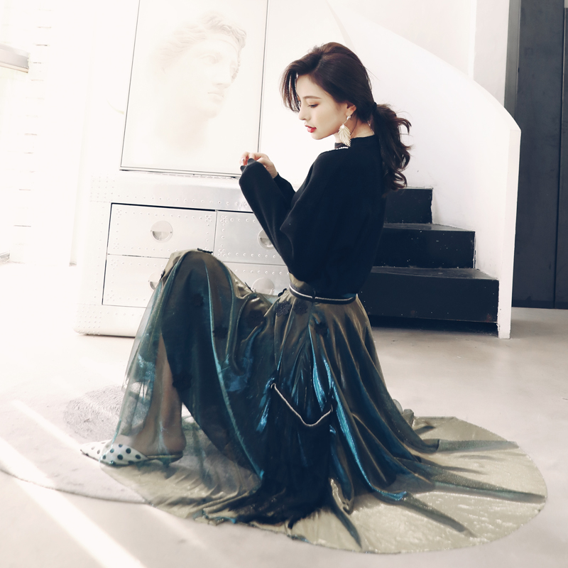 2018秋冬裝女新款韓版港味氣質長袖毛衣針織衫兩件套裝網紗連衣裙