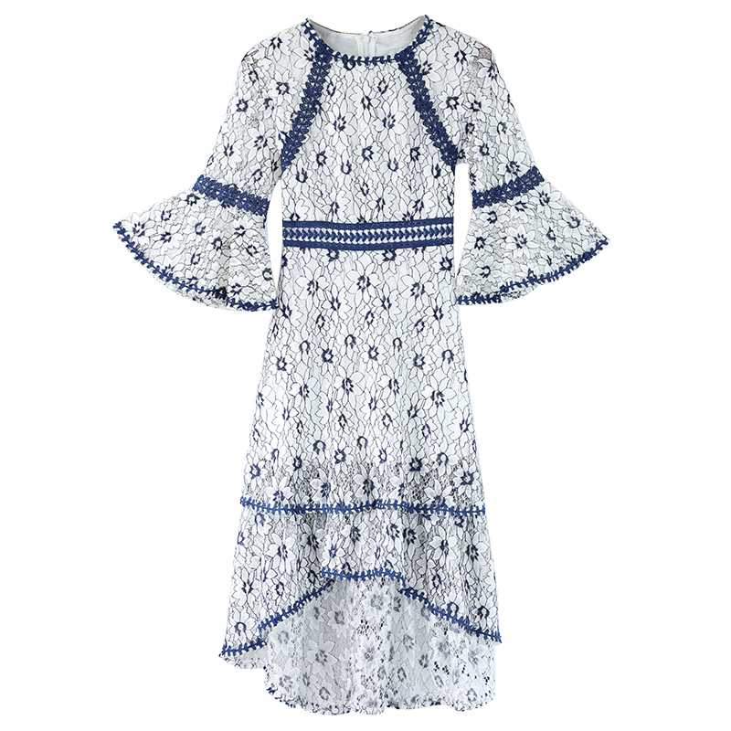 / S秀時尚歐洲站2018夏季新款淑女印花連衣裙女蕾絲收腰顯瘦仙女裙