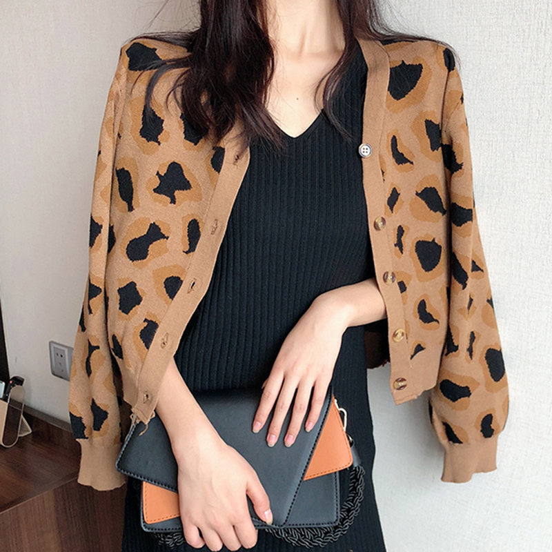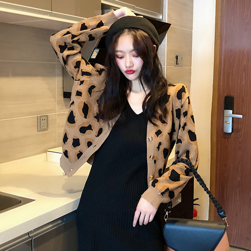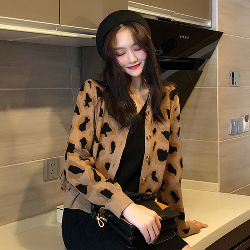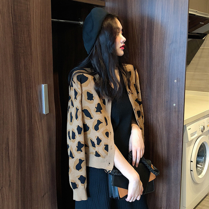 / 復古港味豹紋針織開衫秋裝女2018新款寬松長袖上衣氣質短款外套潮
