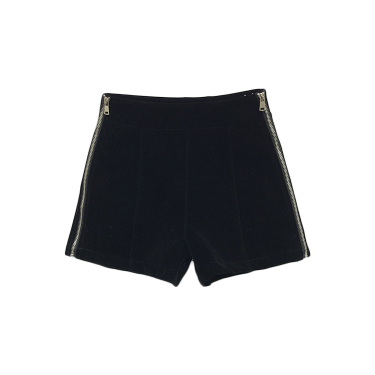 chic秋冬季2018新款褲子時尚絲絨雙拉鏈短褲純色百搭休閑闊腿褲女