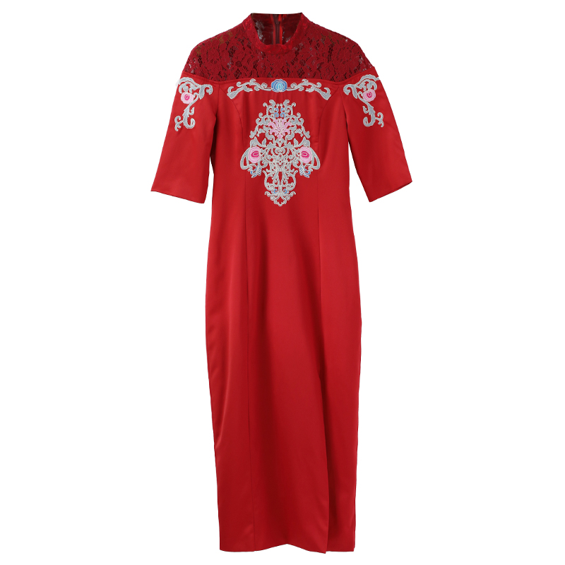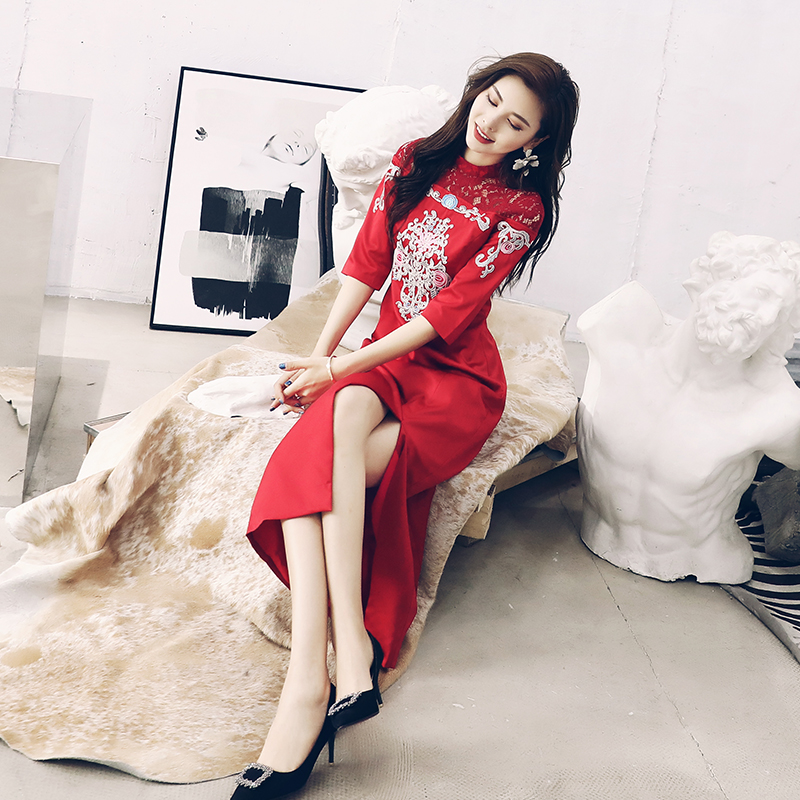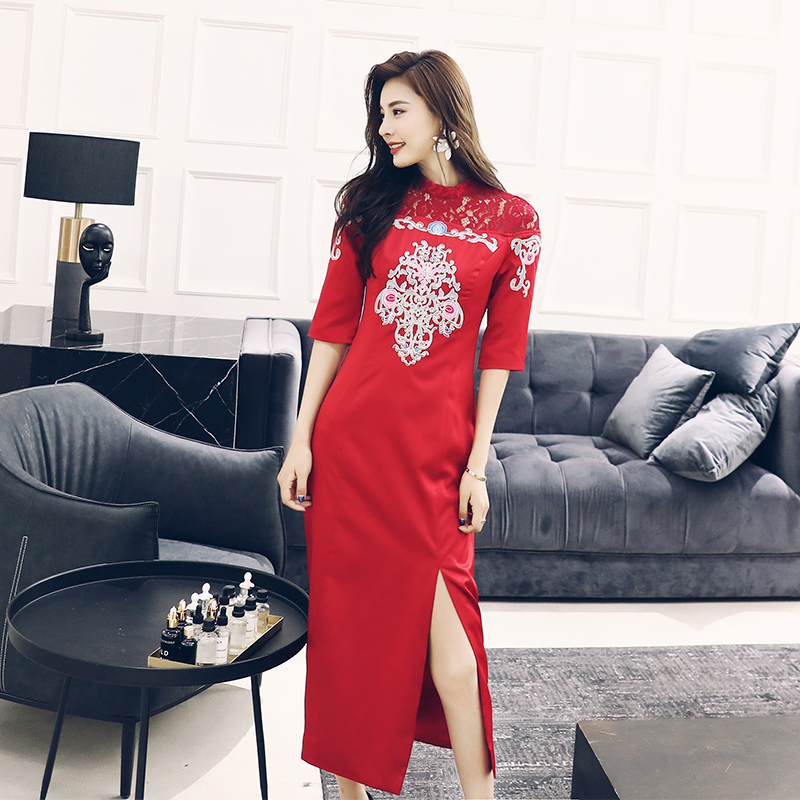 改良版旗袍秋季2018新款女裝中國風時尚少女現代刺繡開叉連衣裙