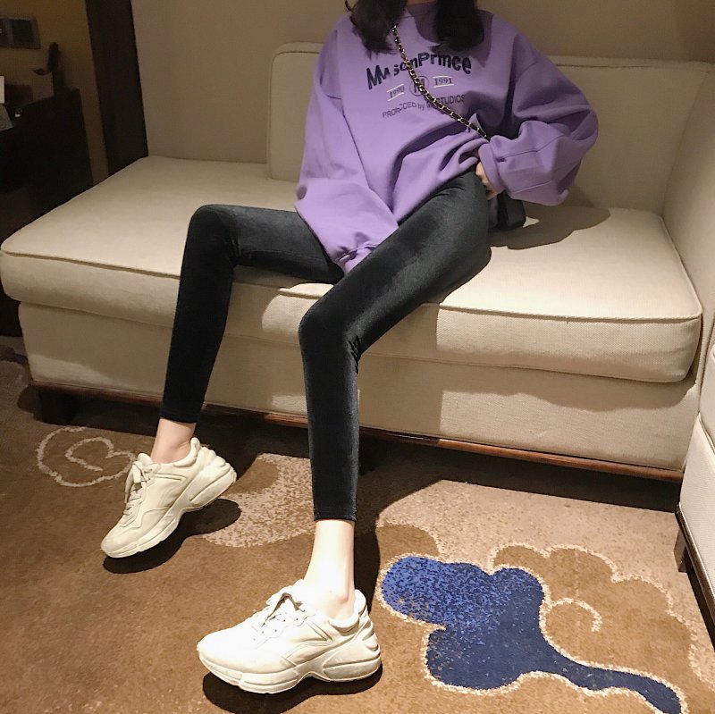 / 褲子秋冬復古chic韓版新款絲絨打底褲時尚保暖女百搭外穿緊身長褲