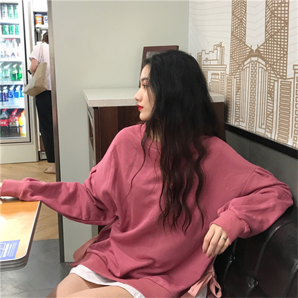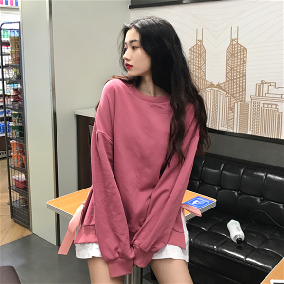 早秋衛衣2018新款女長袖韓版寬松百搭假兩件系帶顯瘦套頭衛衣上衣