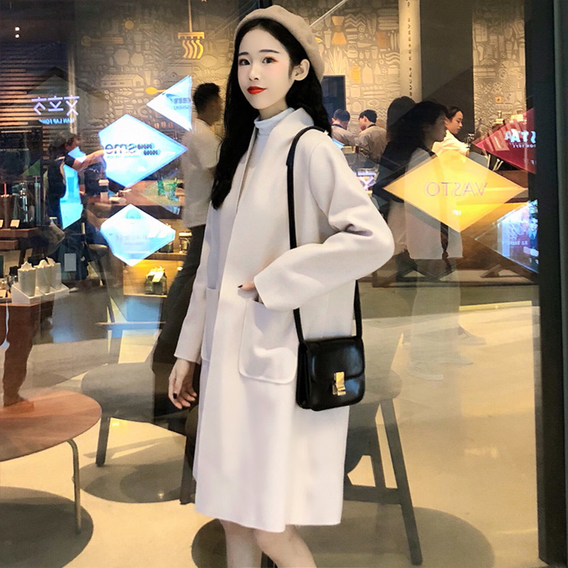 簡約純色風衣女中長款學生呢大衣秋冬裝2018新款寬松長袖毛呢外套