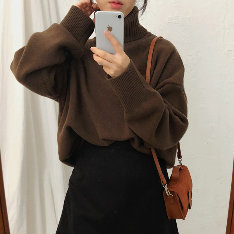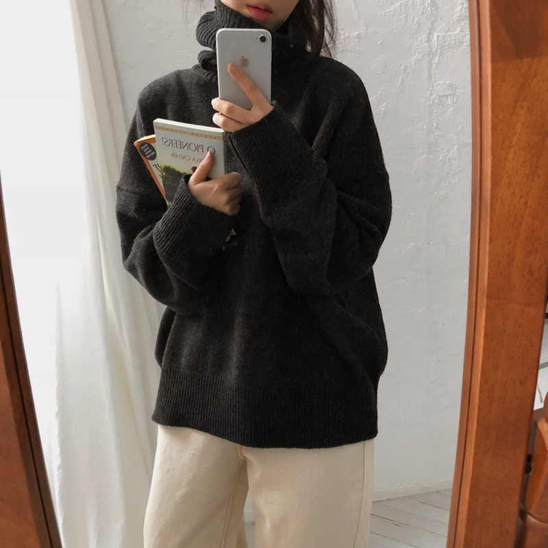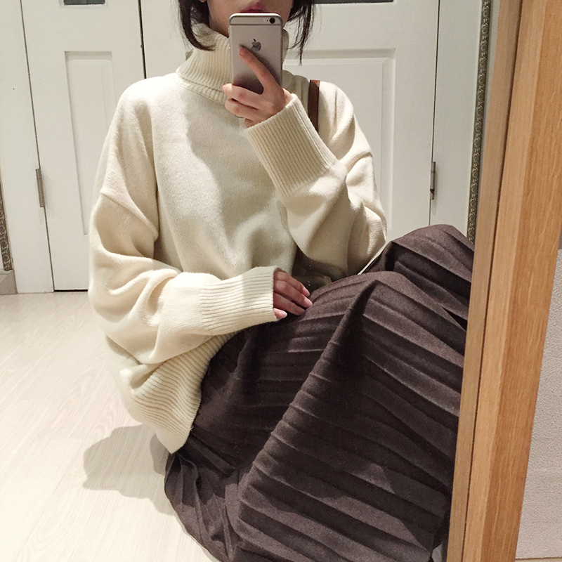 韓系早秋時尚網紅毛衣女2018新款寬松慵懶風加厚高領顯瘦遮臀毛衣