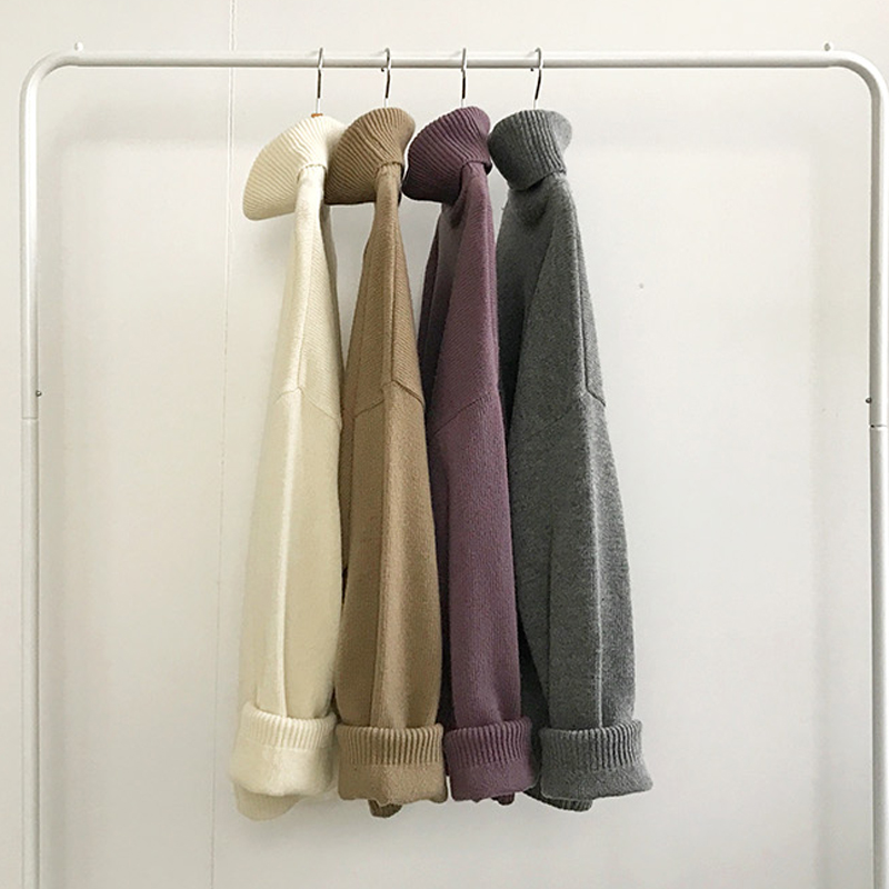 / 韓國chic慵懶風套頭毛衣女秋冬基礎款復古高領保暖長袖毛衣~6色入