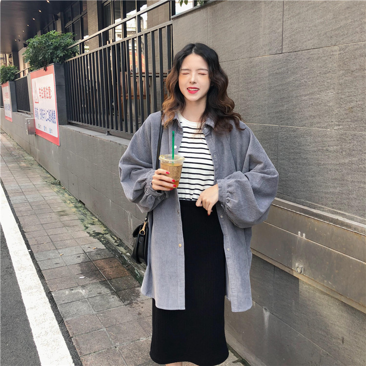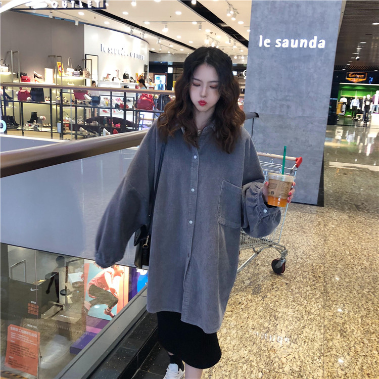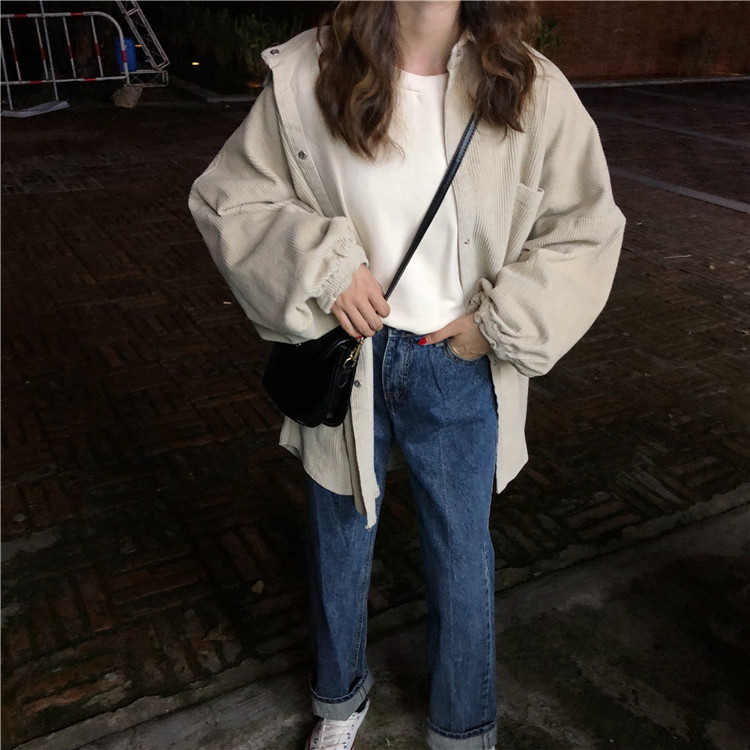 / 秋季2018新款韓版中長款復古港風工裝BF風學生寬松長袖開衫外套女