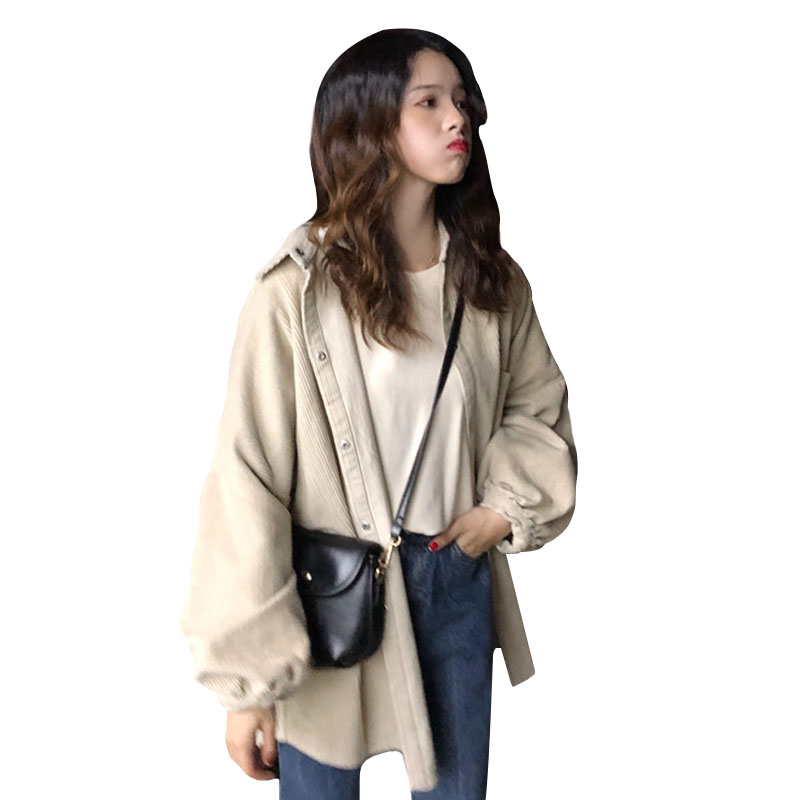 秋季2018新款韓版中長款復古港風工裝BF風學生寬松長袖開衫外套女