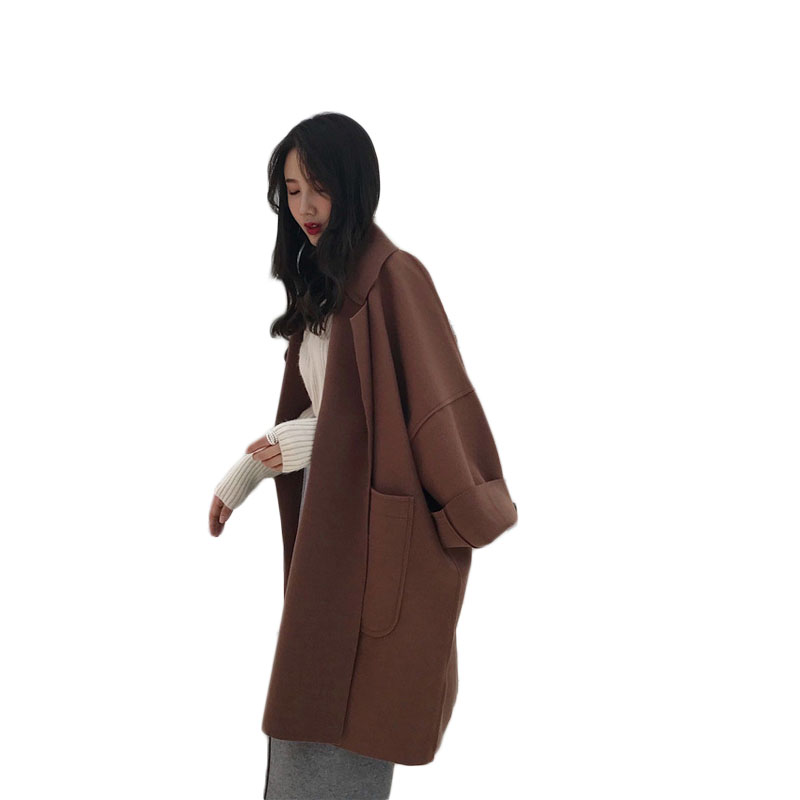 韓版毛呢外套女秋冬大衣女新款2018寬松氣質百搭中長款呢子大衣潮