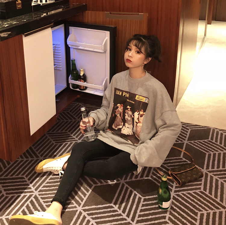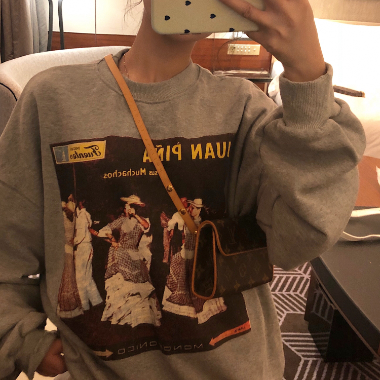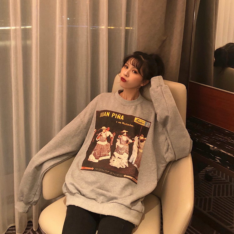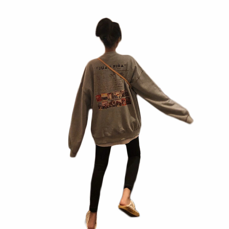 復古雙面印花oversize套頭衛衣女2018新款韓版學院風顯瘦學生上衣