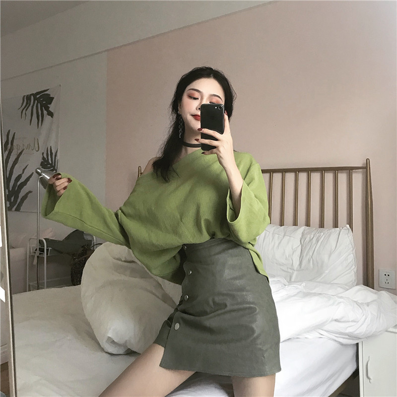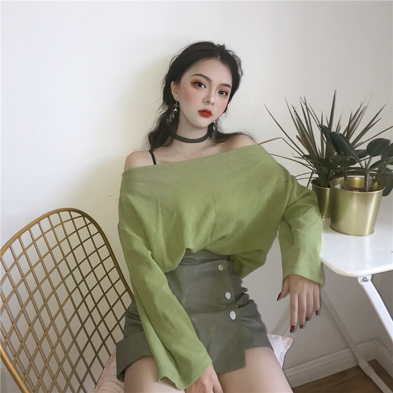 這個上衣的款式還有個小特別的是領子是一字肩的設計 有點小女人風~