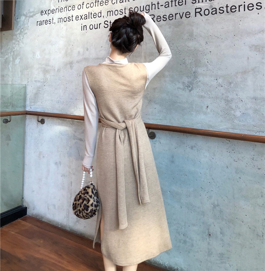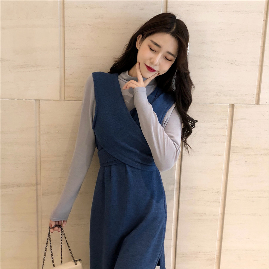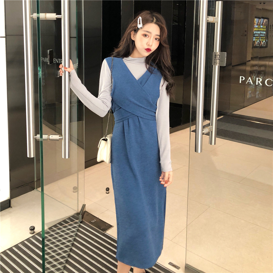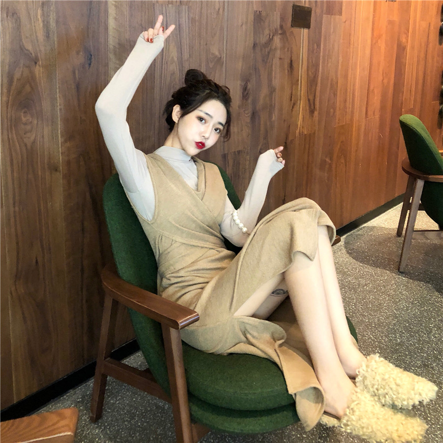 / 新款顯瘦復古氣質中長款連衣裙長袖修身打底衫T恤時尚套裝兩件套