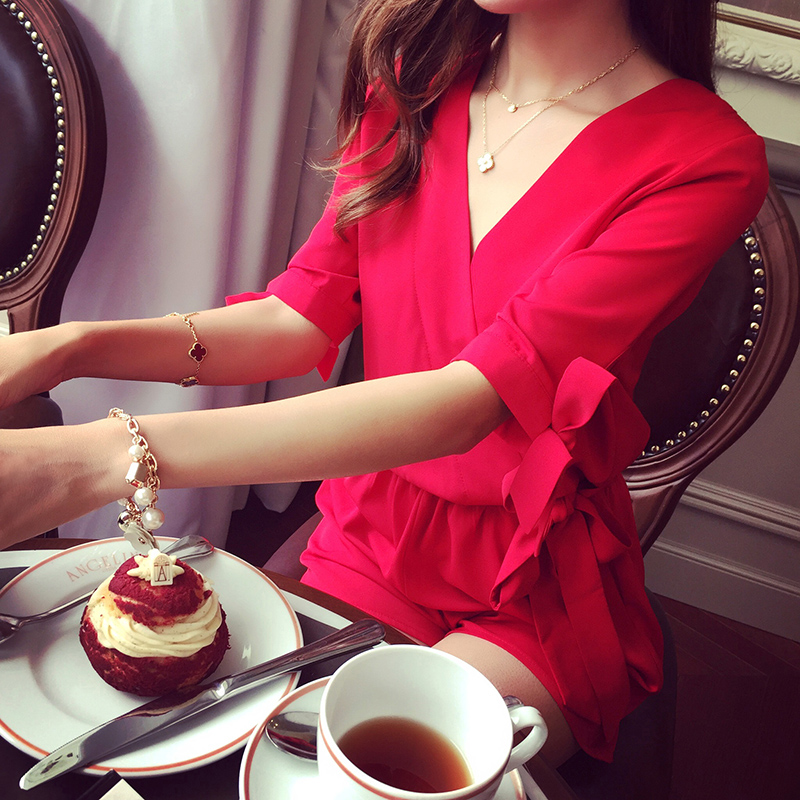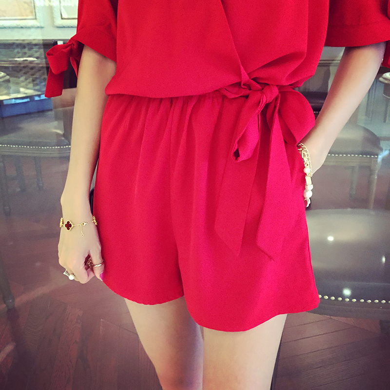 / 夏季特大碼女裝闊腿連體褲寬松胖妹妹200斤顯瘦短褲短袖假兩件套