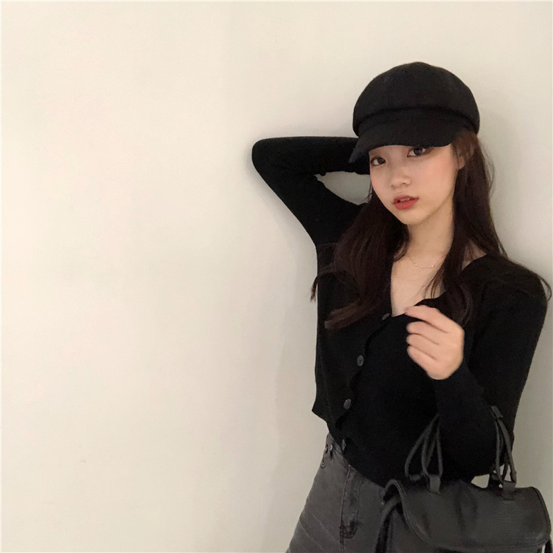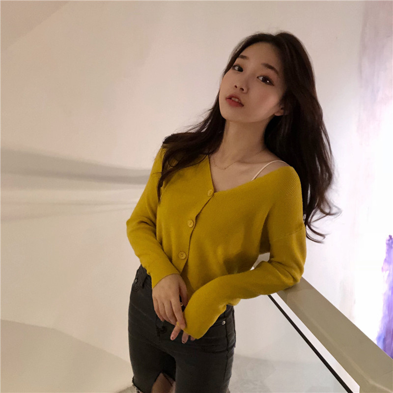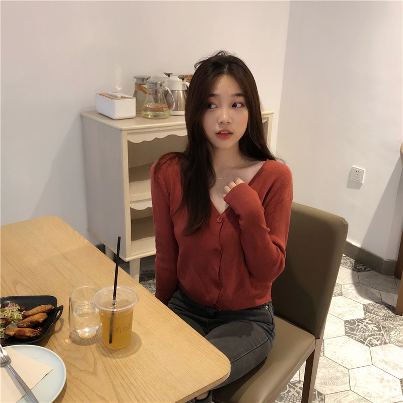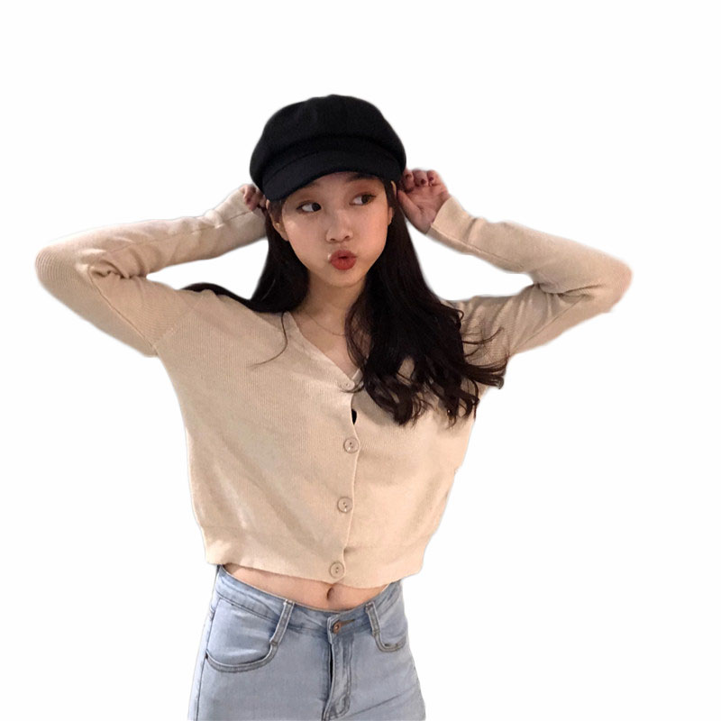 Chic韓版百搭慵懶V領溫柔毛衣女2018新款短款復古長袖開衫外套潮