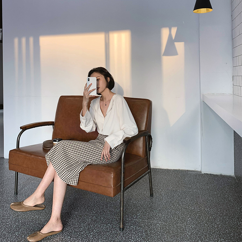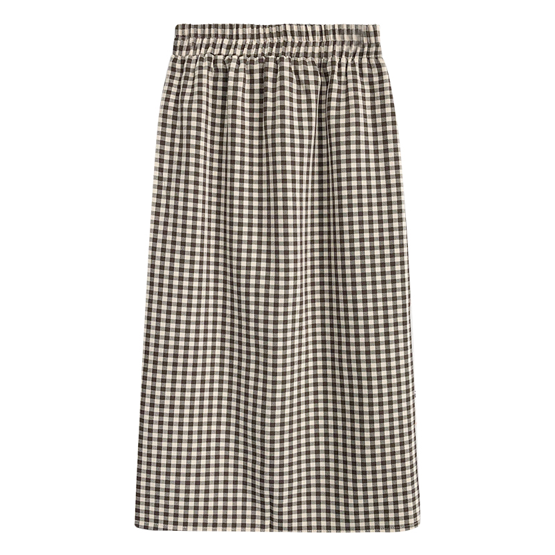 A7seven格子裙女春夏裝新款開叉A字韓版高腰寬松顯瘦中長款半身裙